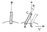 Джеймс Брэдли (1727) использовал для определения скорости света явление аберрации (отклонения) света звезд. Представим, что мы направляем телескоп с неподвижной Земли на звезду в зените. Телескоп нужно установить вертикально. Теперь будем считать, что Земля движется по горизонтали со скоростью V. Видно, что для того, чтобы свет прошел через трубу телескопа, он должен быть наклонен от вертикального направления на малый угол α, Используя прямоугольный треугольник, можно получить формулу для искомого угла