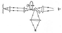 В земных условиях скорость света была впервые измерена лишь сто лет спустя Ипполитом Физо (1849). Схема прибора следующая.