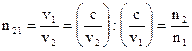 . Если свет падает из вакуума в среду 2, то справа в формуле стоит абсолютный показатель преломления этой среды