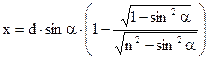 . Если измерить смещение луча и угол падения, то можно вычислить показатель преломления стеклянной пластины. При α=0 величина x=0. Луч падает на пластину перпендикулярно и не смещается.