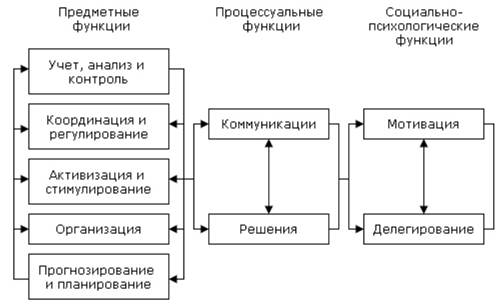 Предметные, процессуальные и социально-психологические аспекты управления, взаимно дополняя друг друга, создают целостную систему функций менеджмента.