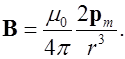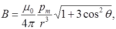 формулами, которые аналогичны формулам для электрического диполя через его дипольный момент. Структура поля – осесимметричная (см. рис. 6.17). Например, модуль вектора индукции магнитного поля диполя выражается как
