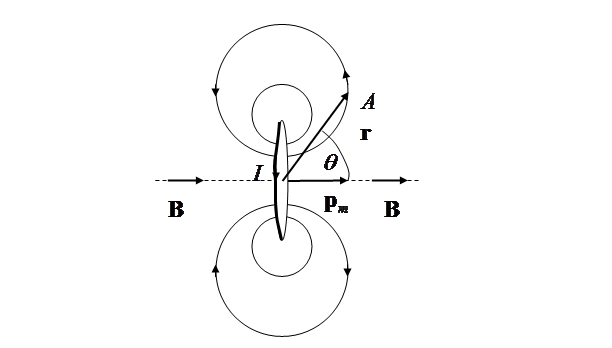 Формула (6.44) применима для магнитного диполя. Расчет позволяет обобщить (6.44) на случай произвольного положения точки наблюдения относительно оси диполя. На больших расстояниях от витка