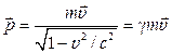 Импульс быстро движущейся частицы (релятивистский импульс) записывается в виде