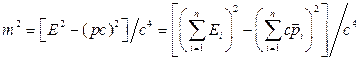 В релятивистской механике, как и в классической, энергия и импульс аддитивны. Энергия Е системы, состоящей из n частиц, определяется как сумма энергий Ei всех частиц: