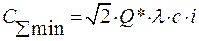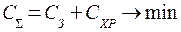 В качестве критерия оптимизации принимается минимум общих затрат С ∑, включающих затраты на выполнение заказов С з и затраты на хранение запаса на складе С хр, в течение определенного периода (год, квартал и т.п.):