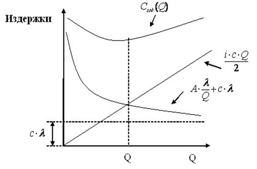Значение оптимума Q * совпадает с точкой пересечения зависимостей С з и С хр. Это объясняется тем, что абсцисса точки пересечения Q находится из решения уравнения: