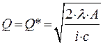 | Пусть А λ - c - i – Q я | затраты на выполнение одного заказа, руб.; потребность в заказываемом продукте в течение данного периода, шт.; цена единицы продукции, хранимой на складе, руб.; доля от цены c, приходящейся на затраты по хранению (обычно i = 0,20-0,25); искомая величина заказа, шт. | |