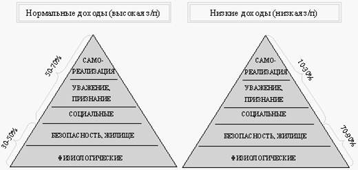 Он разработал «пирамиду потребностей личности» и теорию мотивации (то есть человеку достаточно для существования определенного минимума потребностей (первичных и вторичных)) (Рисунок 1.2).