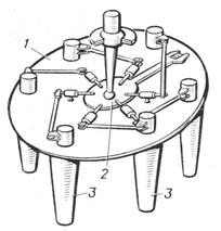 1 – диск, 2 – механизм разворота лопастей, 3 – поворотные лопасти.