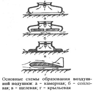 Воздушную подушку можно рассматривать как одну из разновидностей движителя. Воздушная подушка – область повышенного давления между подвижными и неподвижными элементами механизмов в приборах, машинах, орудиях. Различают статические (давление создается вентилятором или компрессором) и динамические (давление, создаваемое крылом летательного аппарата вблизи опорной поверхности) способы образования. Воздушные подушки применяются на транспорте (например суда на воздушной подушке, экранопланы (рис.5)) и в различных механизмах в роли воздушного подшипника.