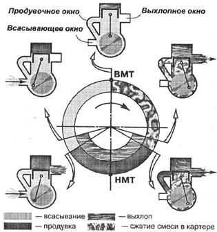 Рис. 1. Схема работы двухтактного двигателя