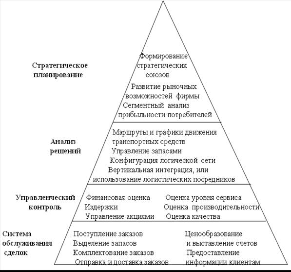 На рис.9.1 изображена иерархия информационный решений в логистике и показано функциональное назначение информации на каждом уровне этой иерархии.