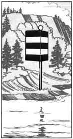 Основными знаками навигационного оборудования на мелководных водохранилищах являются линейные и щелевые створы (рис. 1) и знаки «Ориентир» (рис. 2), а также русловые маяки (рис. 3). На озерно-речных участках и водохранилищах небольшой ширины (до нескольких километров) ходовые берега могут обозначаться перевальными и ходовыми знаками.