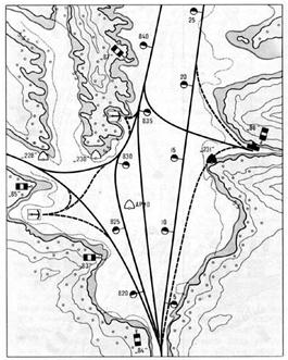 Рис. 6. Расстановка навигационных знаков на глубоководном водохранилище