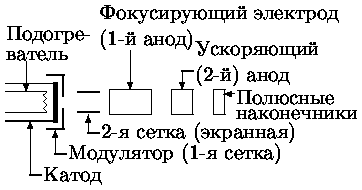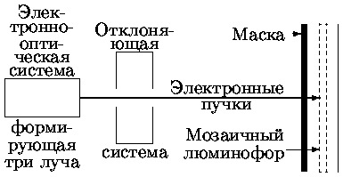Рис. 0.7.4: Электронно-оптическая система цветного кинескопа