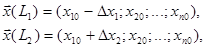 3. Определяют координаты пробных точек (рис..6,3), Например, вдоль направления, параллельного факторной оси x1 ими являются точки L1, L2 с координатами