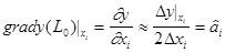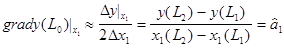 4. По результатам пробных опытов вычисляют оценки составляющих вектор-градиента в точке L0 для каждого i-ro фактора: