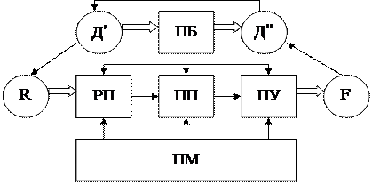 В приведенной модели приняты следующие обозначения: ПБ – портовый бизнес; РП – ресурсы порта; ПП – портовое производство; ПУ – портовые услуги; ПМ – портовый менеджмент; F и R – соответственно доходы и расходы порта.
