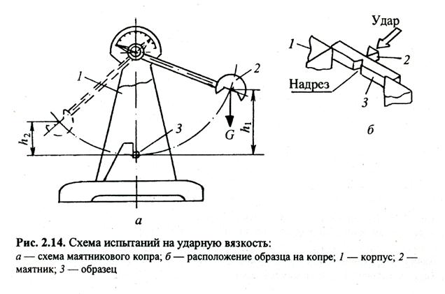 Удельная ударная вязкость определяет по формуле КС = G(h1-h2) / S0 (Дж/см2)