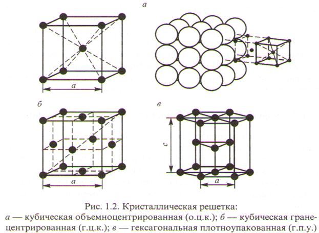 Для металлов характерны три типа кристаллических решёток: