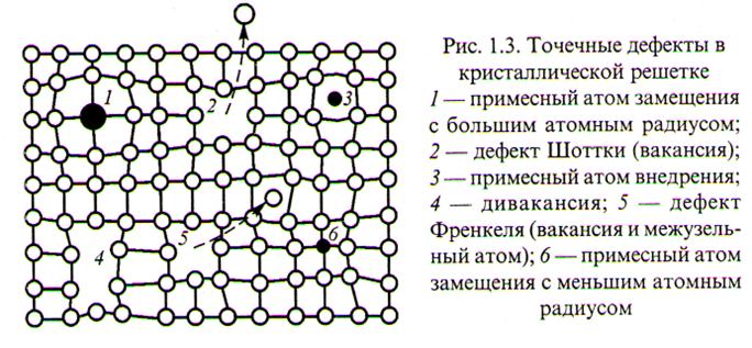 · вакансии - незаполненные узлы кристаллической решётки;