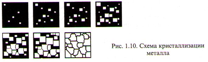 2) Рост кристаллов, вызывающий рост зёрен металла до их соприкосновения и образования плоскостей спайности.