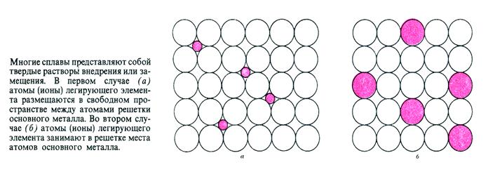 a) замещения – обычно это сплавы металлов с близкими размерами атомов;