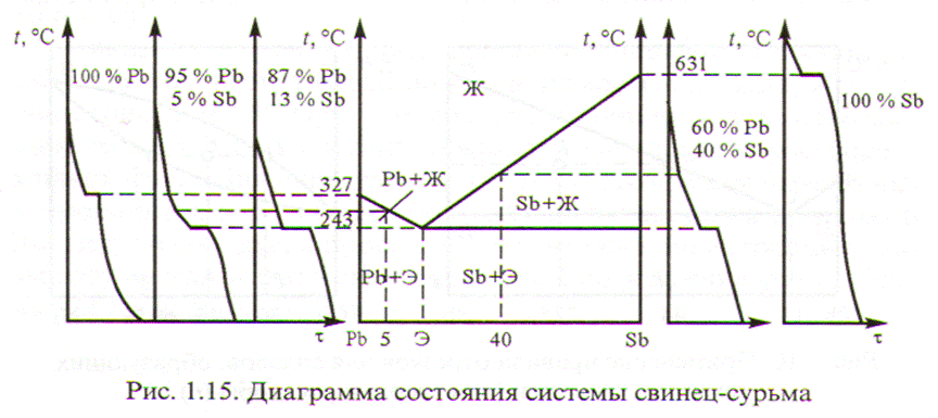 Диаграмма I типа (механическая смесь) на примере Свинец – Сурьма (Pb-Sb)
