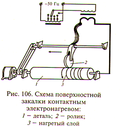 Деталь помещают в индуктор по которому пропускают ток BЧ, при этом в детали возникают вихревые токи, нагревающие её поверхностный слой. Продолжительность нагрева – от долей секунды до нескольких секунд. Затем деталь помещают в закалочную среду.