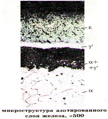 б) азотирование - заключается в насыщении поверхностного слоя деталей азотом, применяется для деталей из среднеуглеродистых и легированных сталей с целью повышения износостойкости. Рабочая температура деталей до 600 0С;