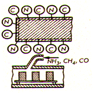 Газовое цианирование (нитроцементация) – нагрев в среде аммиака и метана.