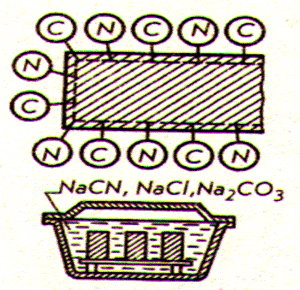 Технология- изделие нагревают при Тн =820…8600С в расплавленных цианистых солях.