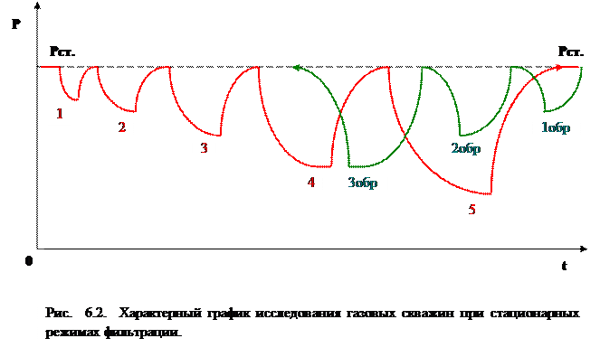 При исследовании низко продуктивных скважин время стабилизации параметров и набор КВД между режимами может достигать месяца и более. Для сокращения общего времени исследования таких скважин существует ряд модификаций метода при стационарных режимах фильтрации: