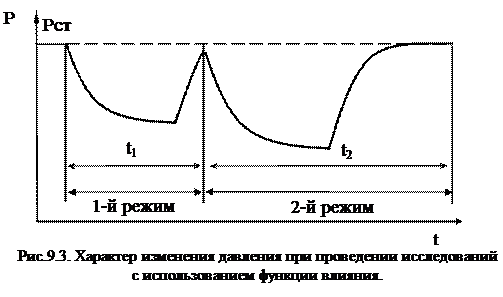 Время работы скважины на режимах t1 и t2, а так же время восстановление давления после последнего режима зависит от параметров пласта и должно обеспечивать стабилизацию значений функции влияния. Продолжитель-