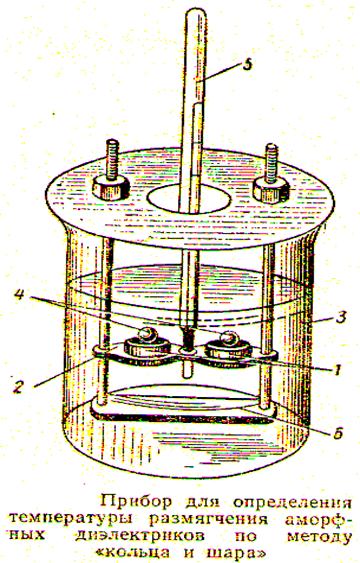 б) теплостойкость – позволяет оценить стойкость диэлектрика к кратковременному нагреву. Определяется при помощи аппарата Мартенса или по методу кольца и шара;