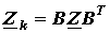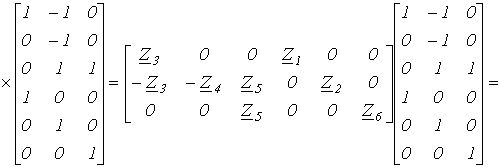 где Z – диагональная квадратная (размерностью n x n) матрица сопротивлений ветвей, все элементы которой (взаимную индуктивность не учитываем), за исключением элементов главной диагонали, равны нулю. Соотношение (4) представляет собой матричную запись закона Ома. Если обе части равенства (4) умножить слева на контурную матрицу В и учесть второй закон Кирхгофа, согласно которому