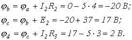 после чего определим потенциалы точек контура относительно потенциала произвольно выбранной точки a, потенциал которой принят за нуль: