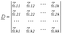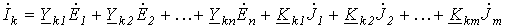 - комплекс входной проводимости k – й ветви, численно равный отношению тока к ЭДС в этой ветви при равных нулю ЭДС в остальных ветвях;