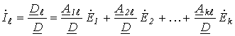 Здесь Входные и взаимные проводимости можно определить экспериментально или аналитически, используя их указанную смысловую трактовку, при этом Аналогично определяются коэффициенты передачи тока Доказательство принципа наложения можно осуществить на основе метода контурных токов. Если решить систему уравнений, составленных по методу контурных токов, относительно любого контурного тока, например