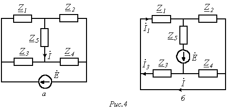 В качестве примера использования данного принципа рассмотрим цепь на рис. 4,а, в которой требуется определить ток