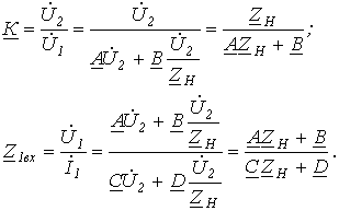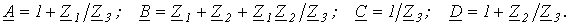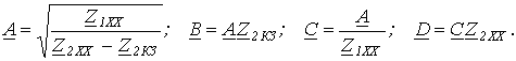 Решение уравнений (6)-(8) относительно коэффициентов четырехполюсника дает: