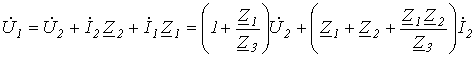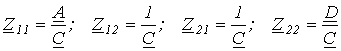 Сопоставляя выражения (11) и (12) с уравнениями четырехполюсника в Z-форме (см. табл. 1), получим