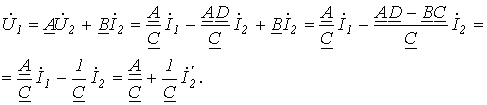 Решая полученные уравнения (1) и (2) относительно напряжения и тока на первичных зажимах, получим