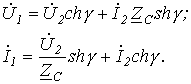 получаем уравнения четырехполюсника, записанные через гиперболические функции: