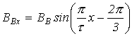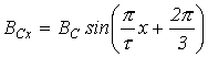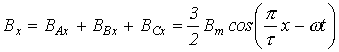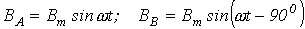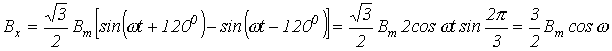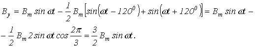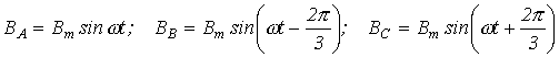 Приведенные соотношения учитывают пространственное расположение катушек, но они также питаются трехфазной системой токов с временным сдвигом по фазе на 1200. Поэтому для мгновенных значений индукций катушек имеют место соотношения