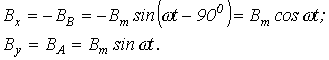 Найдем проекции результирующего вектора магнитной индукции на оси x и y декартовой системы координат, связанной с осями катушек: