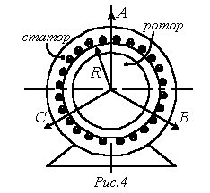 , описывая окружность, что соответствует круговому вращающемуся полю.