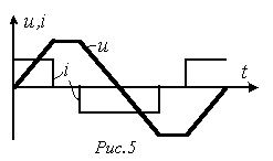 , т.е. кривая напряжения искажена больше, чем кривая тока. Этому случаю будет соответствовать рис. 5 при взаимной замене на нем кривых напряжения и тока. Таким образом, катушка индуктивности является сглаживающим элементом для тока.