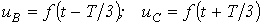 напряжения на фазе А со сдвигом на треть периода Т основной гармоники: